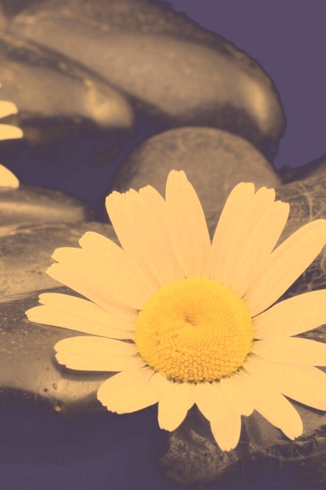 Обои для рабочего стола «Ромашка среди гальки» 640х960 с фильтром nashville (оригинал 3872х2592)
