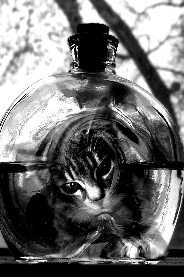 «Кот наблюдает за рыбкой в бутылке»