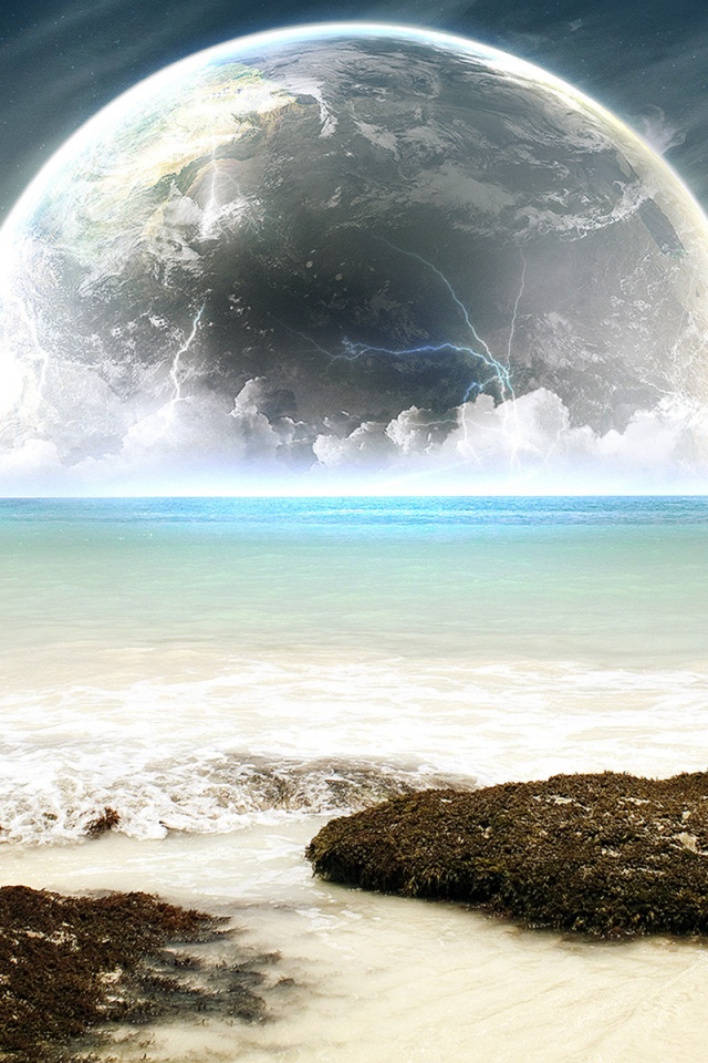 «Огромная луна над океаном»