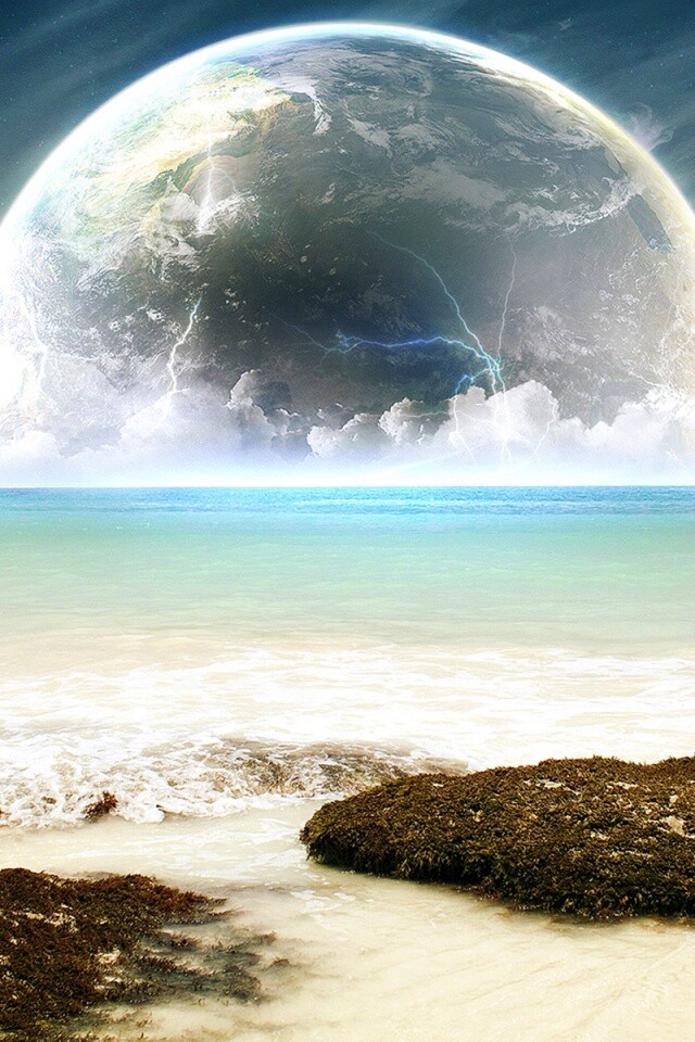«Огромная луна над океаном»