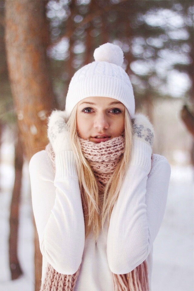 «Девушка в белом в снежном лесу»