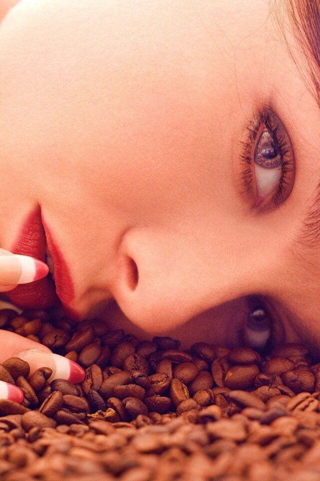 «Соблазнительная девушка с кофейными зернами»