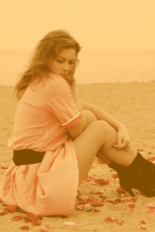 «Девушка среди лепестков на пляже»