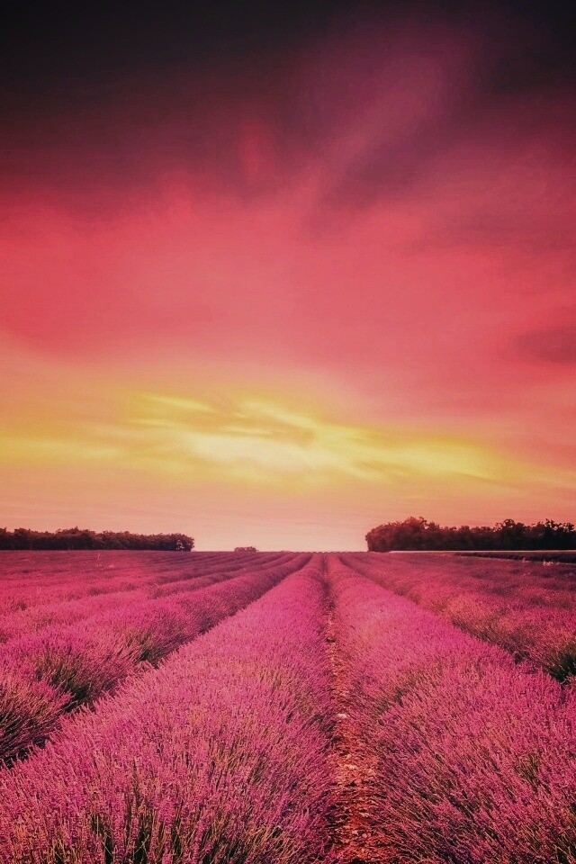 «Поле фиолетовых цветов на закате»