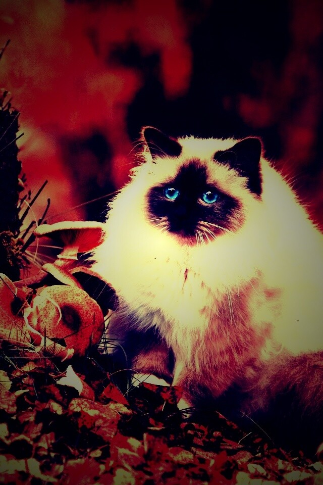 «Пушистый кот среди пожелтевшей листвы»