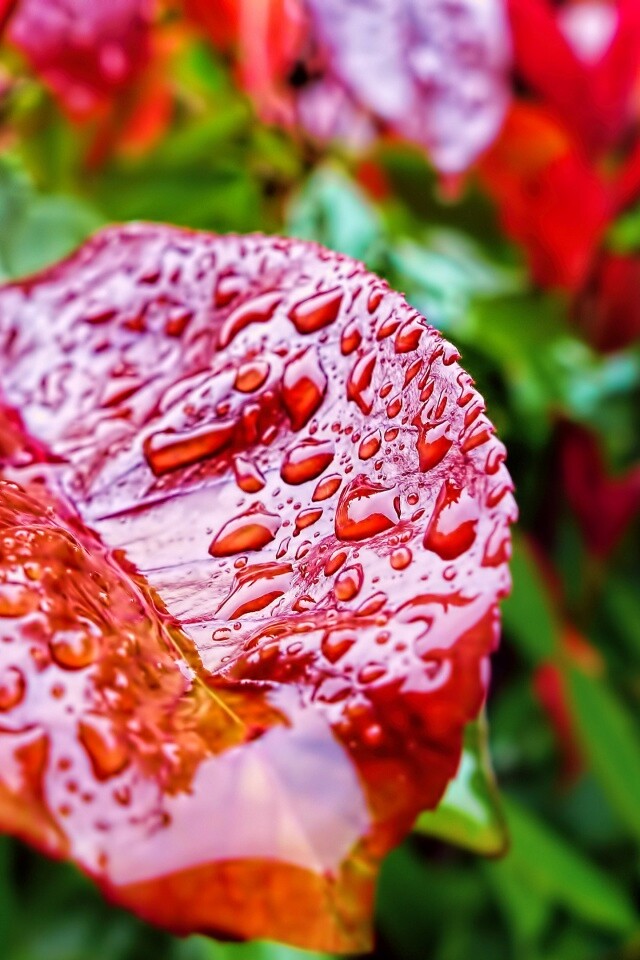«Красный лист в каплях воды»