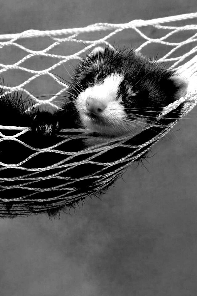 Обои для рабочего стола «Хорек в гамаке» 640х960 с фильтром inkwell (оригинал 2560х1600)