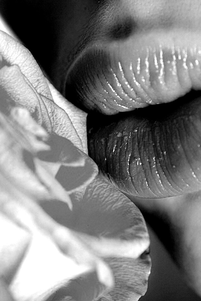Обои для рабочего стола «Губы девушки и роза» 640х960 с фильтром inkwell (оригинал 2560х1600)