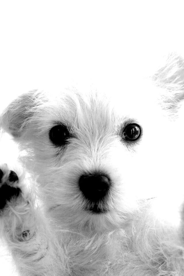 «Белый любознательный щенок»