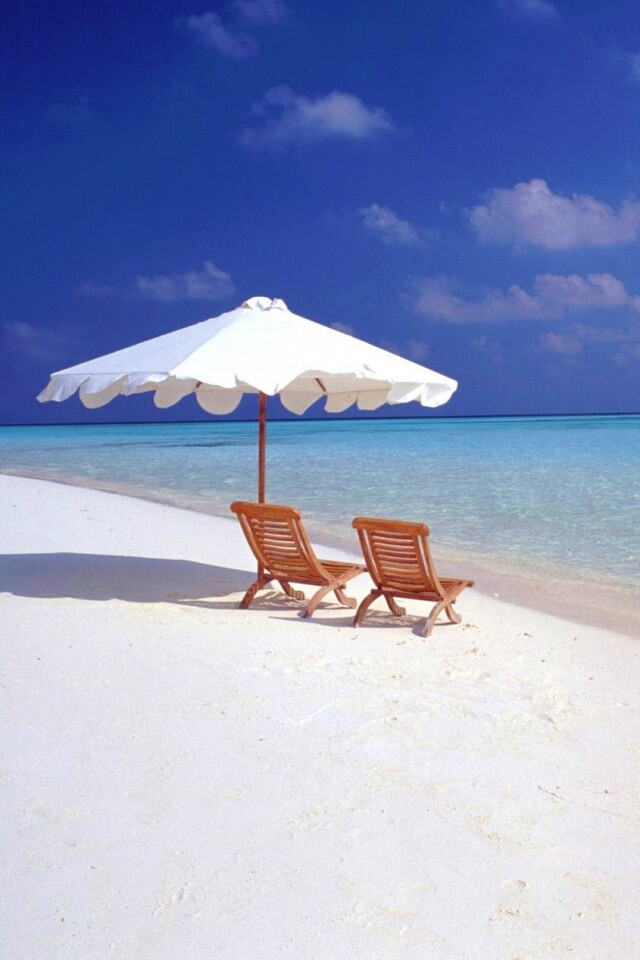 «Песчаный пляж с двумя жезлонгами»