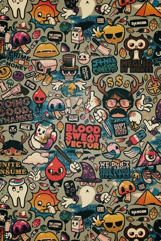 Обои для рабочего стола «Коллаж из мультяшных картинок» 640х960 с фильтром earlybird (оригинал 2560х1600)