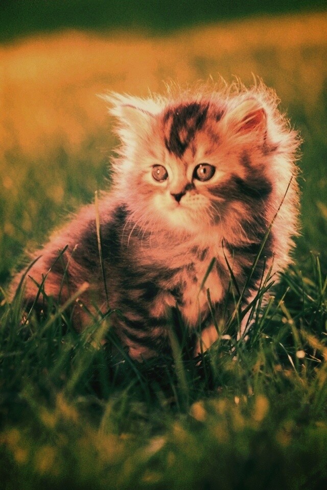 «Пушистый котенок в траве»