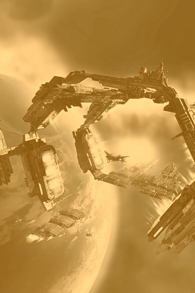 Обои для рабочего стола «Космический корабль» 640х960 с фильтром kelvin (оригинал 1920х1080)
