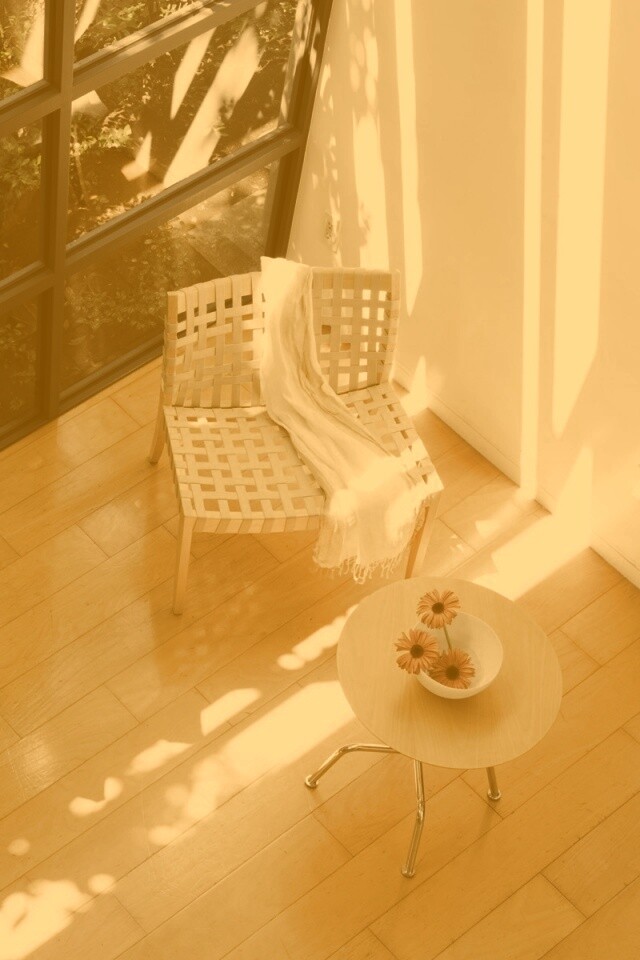 «Стул, столик и цветы в комнате»