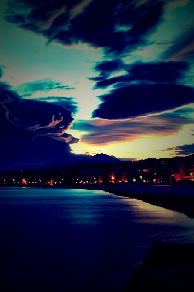 «Красивый закат над городом у моря»
