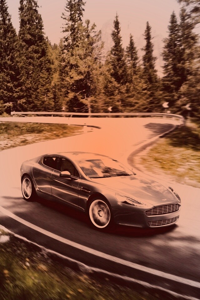 Обои для рабочего стола «Астон мартин на лесной дороге» 640х960 с фильтром toaster (оригинал 1920х1200)