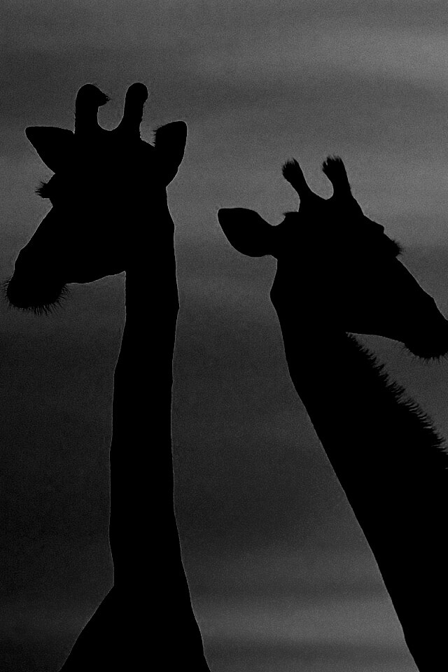«Три силуэта жирафов на фоне неба»