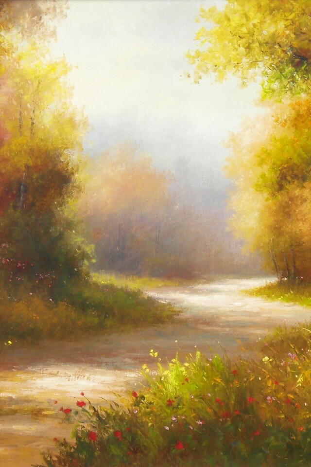 Обои для рабочего стола «Рисунок лесной дороги» 640х960 с фильтром vibrance (оригинал 2765х1820)