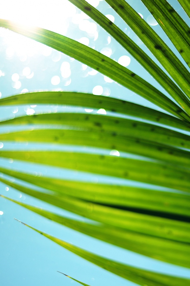 Обои для рабочего стола «Солнце просвечивает сквозь пальмовый лист» 640х960 (оригинал 2560х1600)