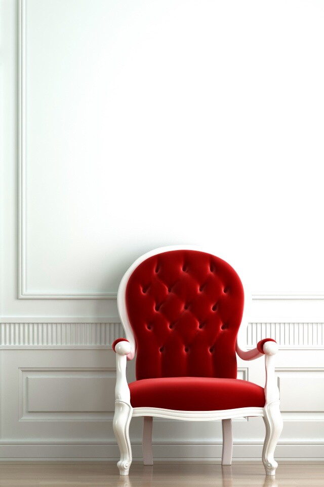 «красное кресло в белой комнате»