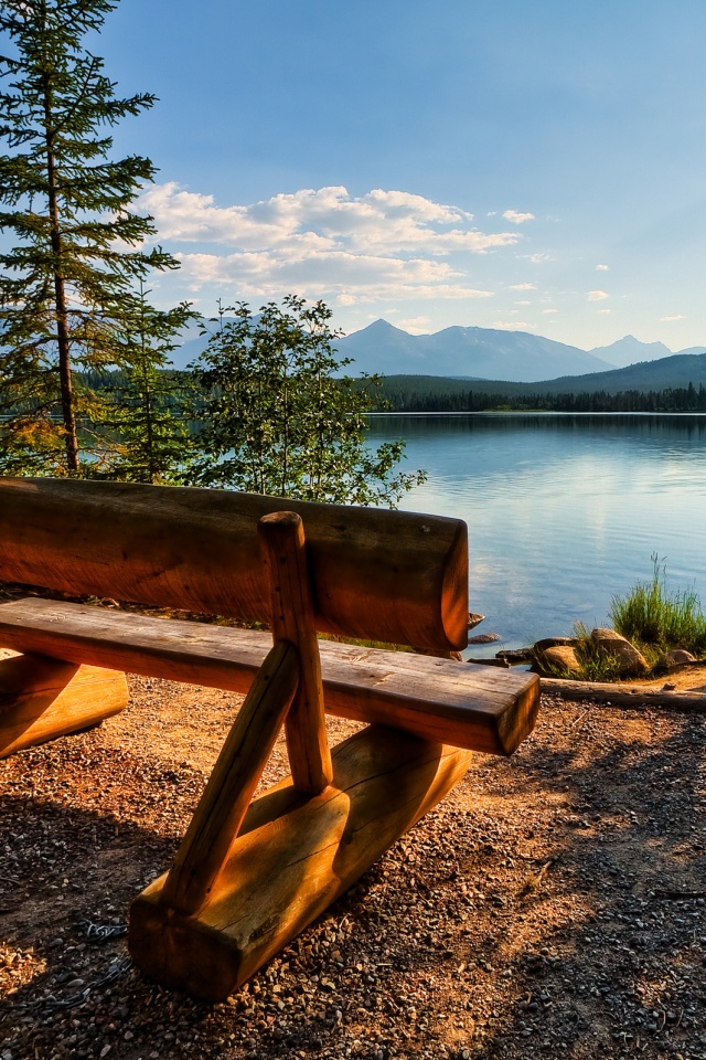 «Деревянная скамья на берегу озера»