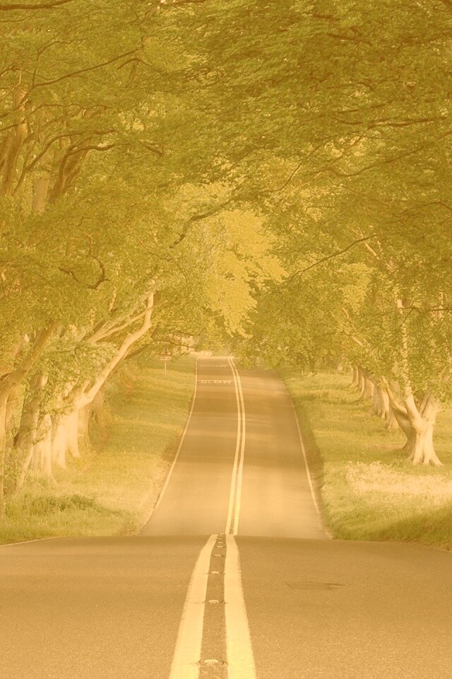 Обои для рабочего стола «Дорога через лес» 640х960 с фильтром kelvin (оригинал 1920х1440)