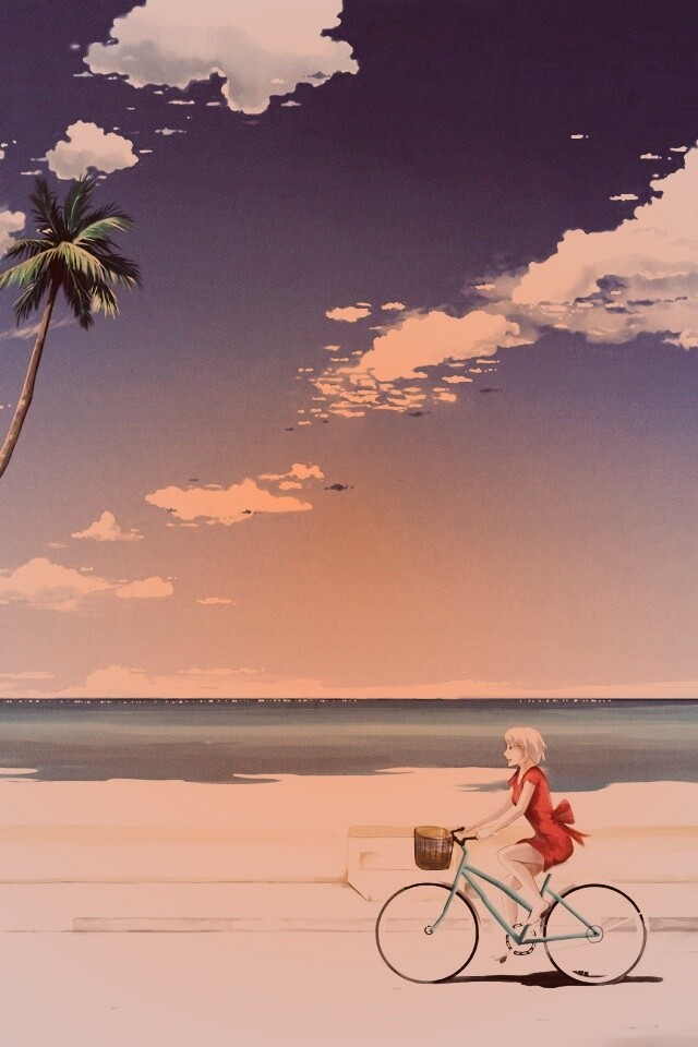«Девушка едет на велосипеде вдоль берега»