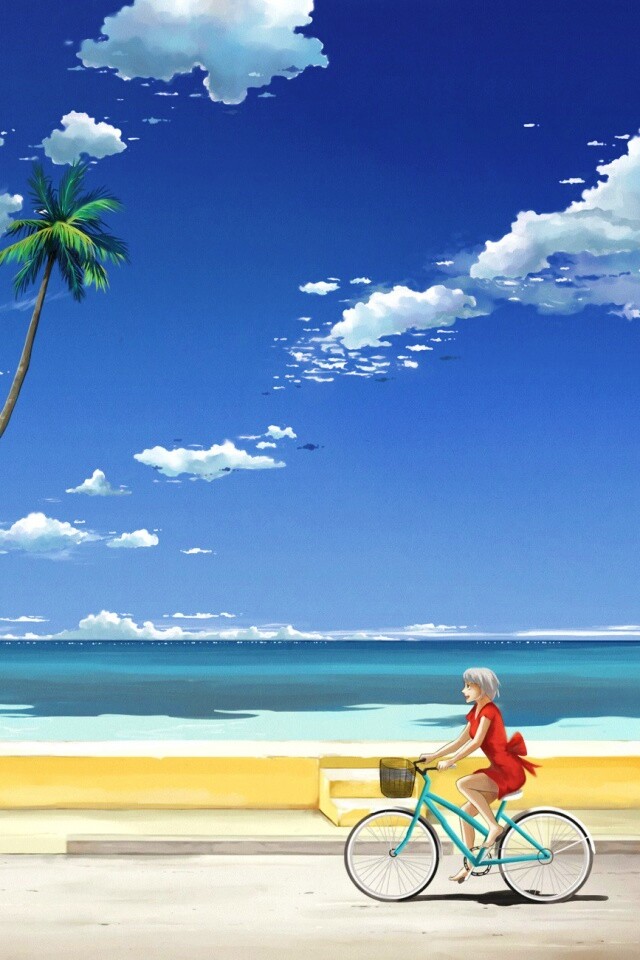 «Девушка едет на велосипеде вдоль берега»
