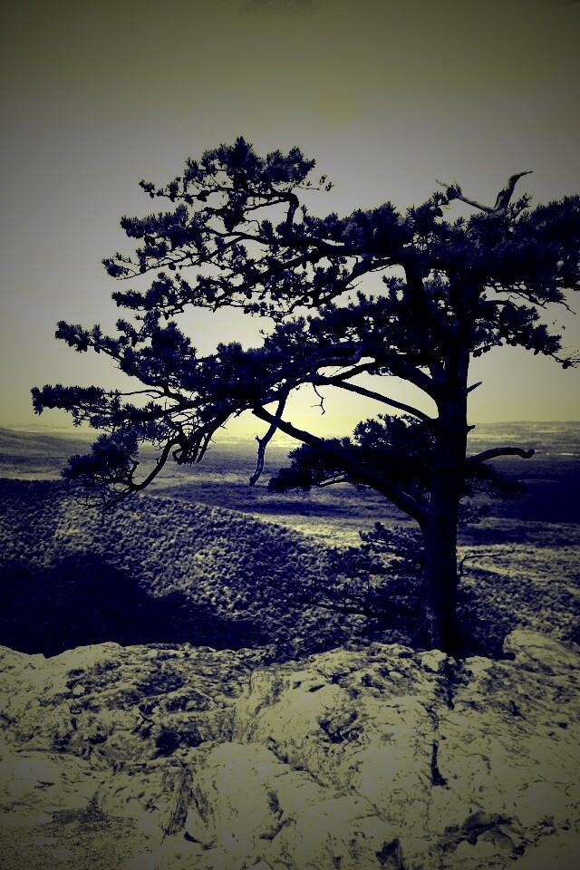 «Горное дерево в черно-белых тонах»