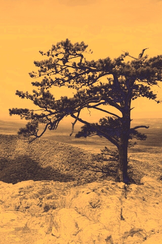 «Горное дерево в черно-белых тонах»
