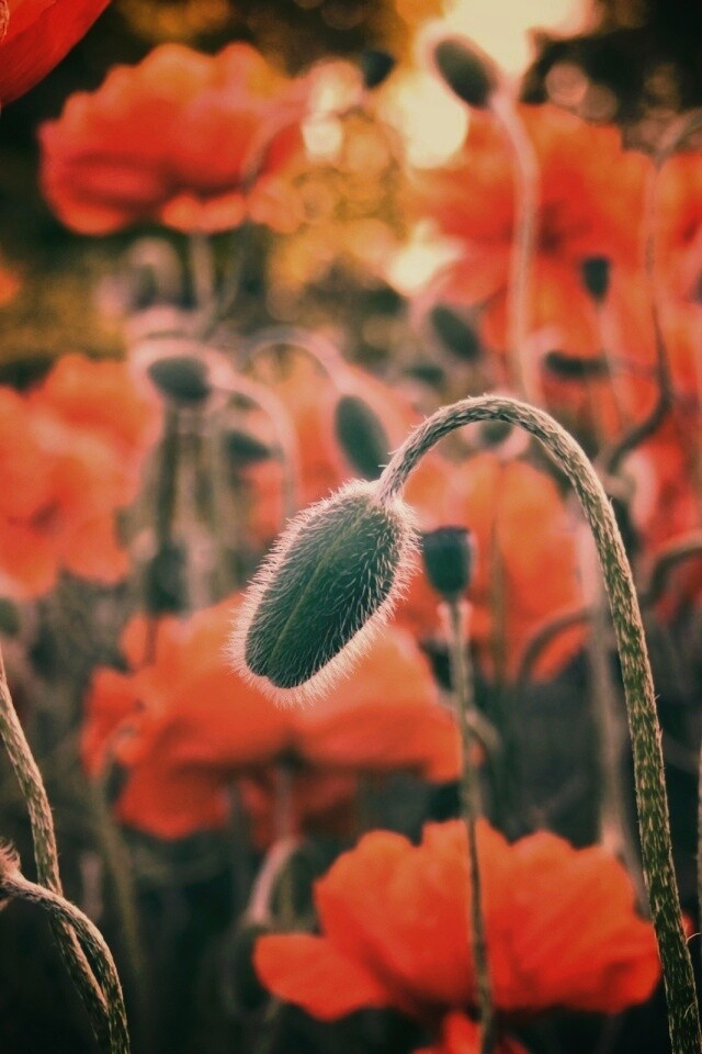 Обои для рабочего стола «Бутон среди цветов» 640х960 с фильтром earlybird (оригинал 2560х1600)