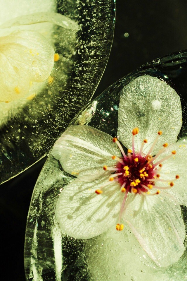 Обои для рабочего стола «Цветы вишни во льду» 640х960 с фильтром vibrance (оригинал 2560х1600)