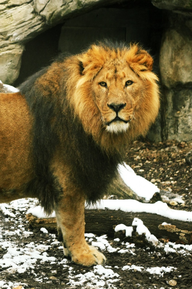 Обои для рабочего стола «Красивый лев в лесу» 640х960 (оригинал 2560х1600)
