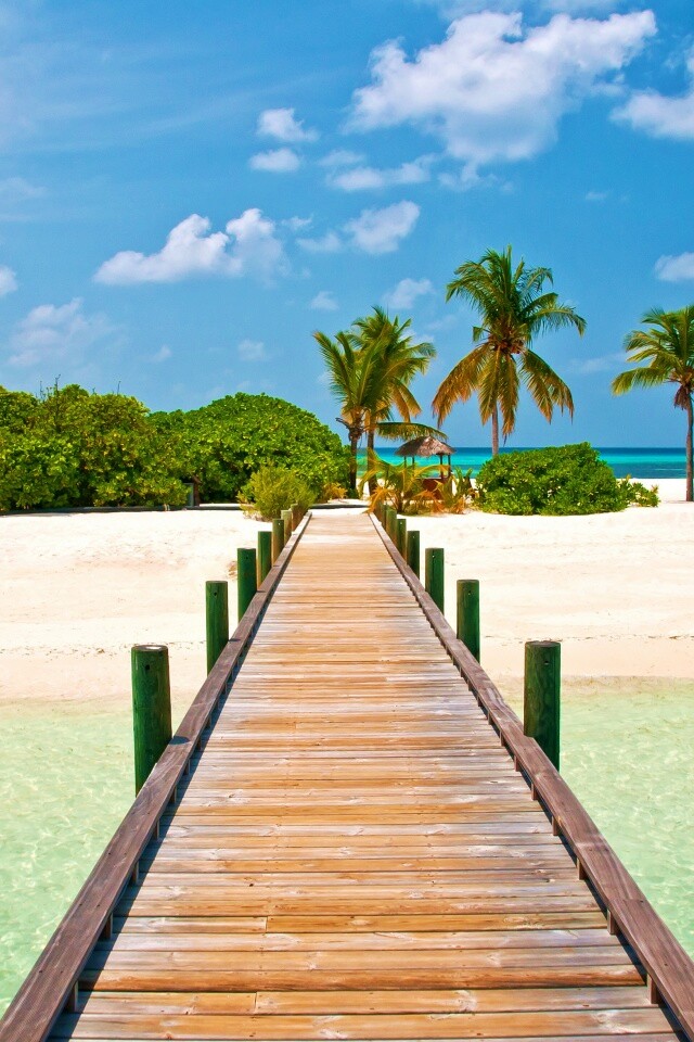 Обои для рабочего стола «Пирс на тропическом острове» 640х960 с фильтром vibrance (оригинал 3700х2458)
