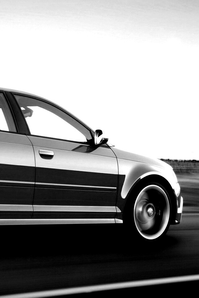 Обои для рабочего стола «Фотосессия Audi RS3 во время движения» 640х960 с фильтром inkwell (оригинал 1920х1080)