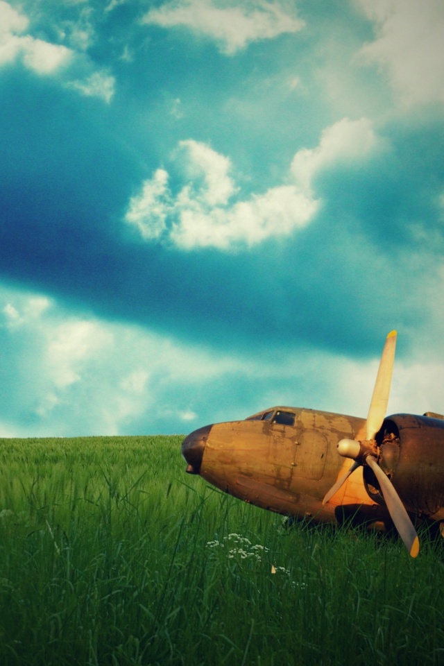 «Старый ржавый самолет на лугу»