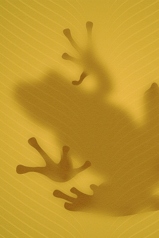 «Силуэт лягушки просвечивает сквозь зеленый лист»