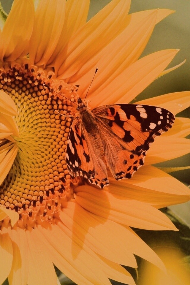 Обои для рабочего стола «Бабочка на подсолнухе» 640х960 с фильтром toaster (оригинал 1920х1200)