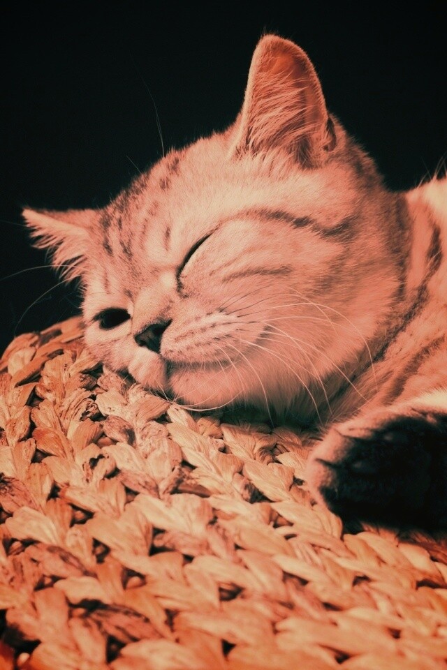 «Пушистый кот спит на корзине»