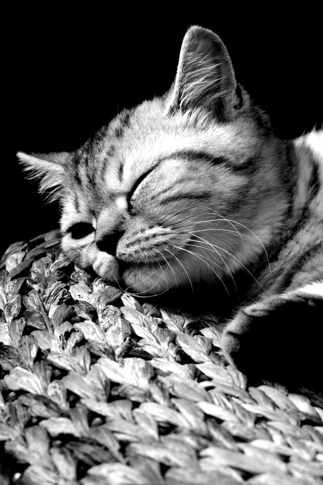 «Пушистый кот спит на корзине»