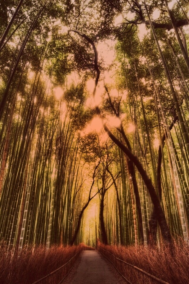 Обои для рабочего стола «Дорога в тростниковых зарослях» 640х960 с фильтром toaster (оригинал 2560х1600)