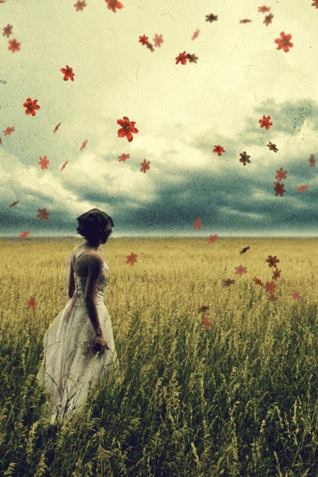 «Грустная девушка в поле травы»