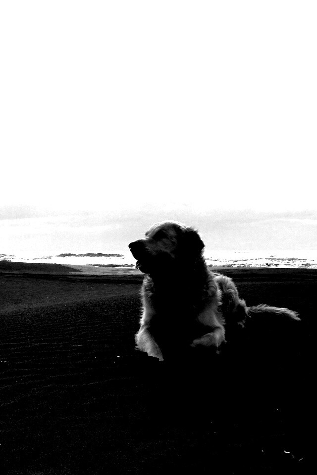 «Красивая собака на оранжевом песке»