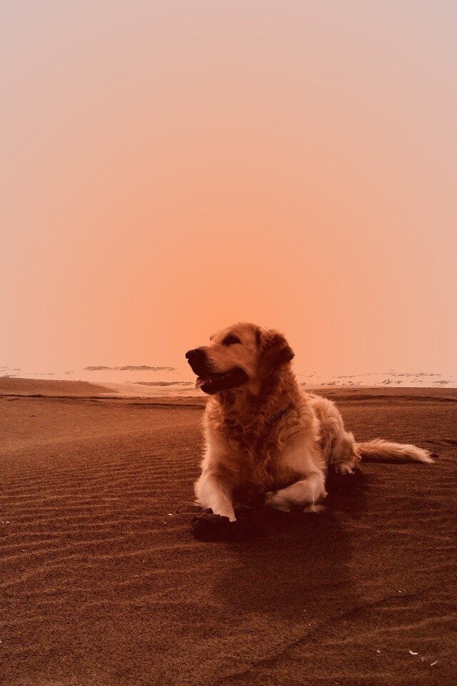 «Красивая собака на оранжевом песке»