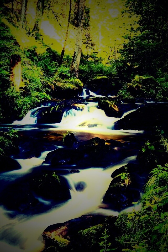 Обои для рабочего стола «Живописный лесной водопад» 640х960 с фильтром lomo (оригинал 2560х1600)