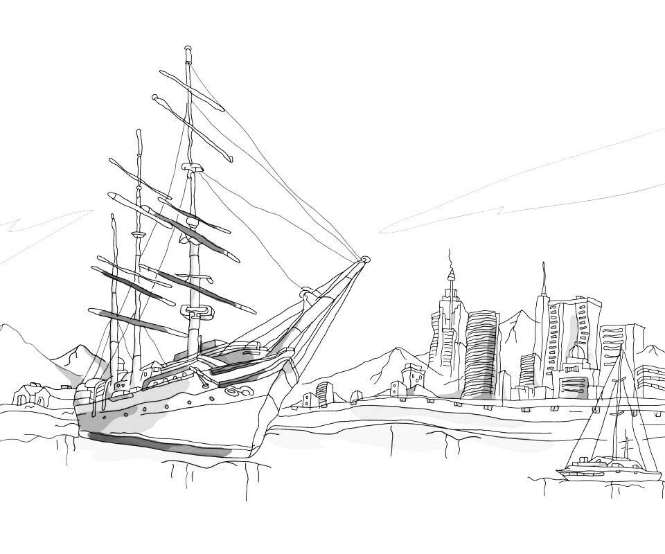 «Парусник у города»