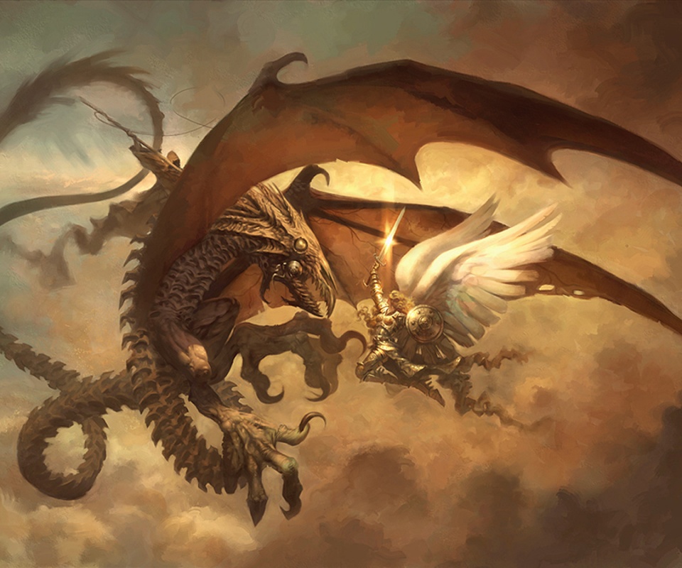 Обои для рабочего стола «Ангел против дракона» 960х800 (оригинал 1440х900)
