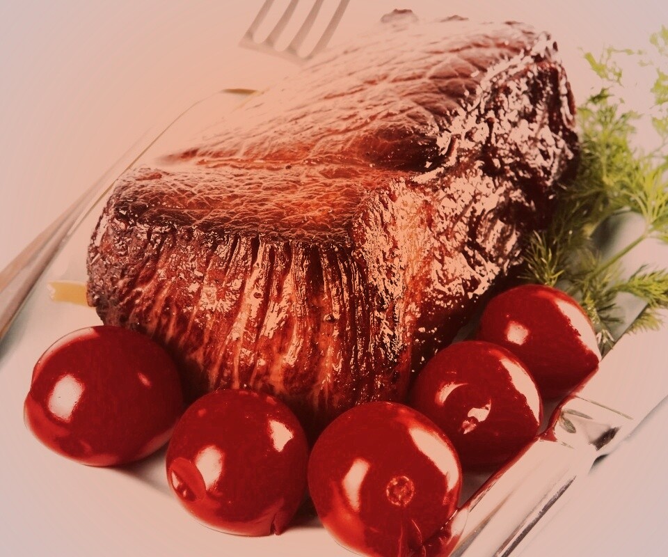 Обои для рабочего стола «Стейк с помидорами» 960х800 с фильтром toaster (оригинал 2560х1600)