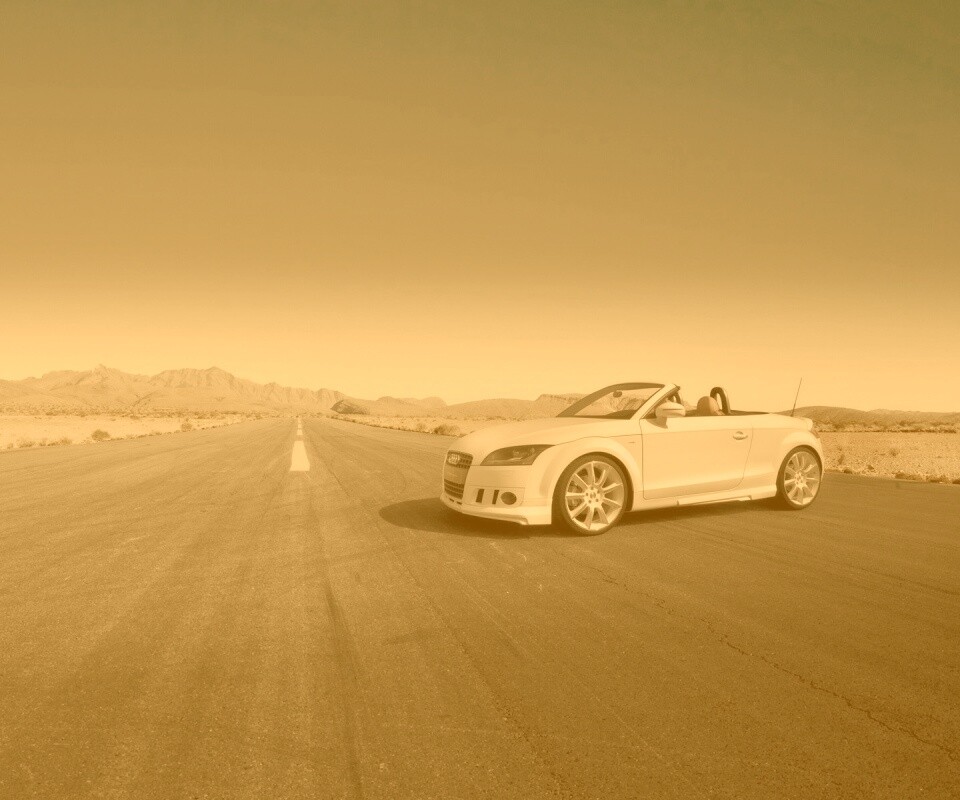 «Кабриолет Ауди на пустынной дорге»