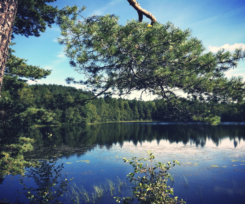 Обои для рабочего стола «Ветка сосны над озером» 960х800 (оригинал 1920х1200)